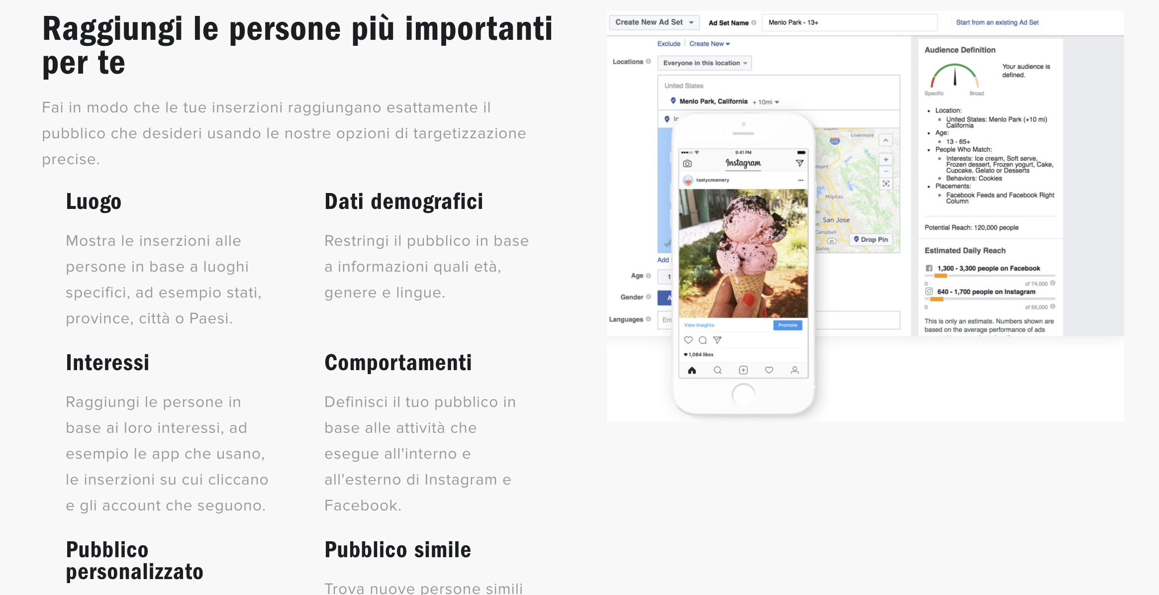 La grandissima risorsa però presente in questa sezione è la parte relativa alla targhetizzazione del pubblico, oppure i diversi obiettivi che è possibile impostare e perseguire.